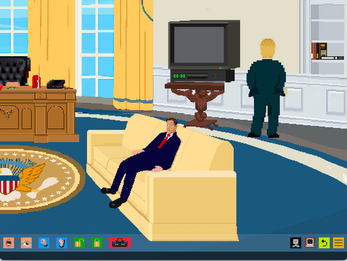 I accidentally restarted the game when I wanted to check if there was a save function. In the bottom right corner, I only had the most right icon and not the other three I can see in that Oval Office screenshot. I will give it another shot tonight.